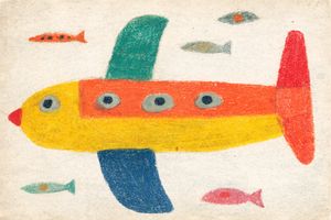 A playful reimagining of travel as fantasy. The airplane becomes a creature among creatures. Original Ipad Drawing.