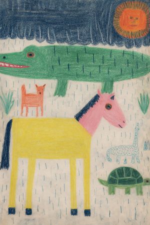An intuitive ecosystem where scale collapses and coexistence prevails. The rain functions as a unifying rhythm rather than a threat. Original iPad Drawing.