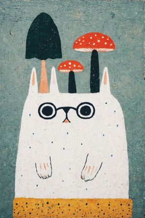 A gentle collision of whimsy and introspection. The figure’s spectacles suggest awareness, while the mushrooms propose a quiet permeability between inner life and imagined worlds. Original iPad Drawing.